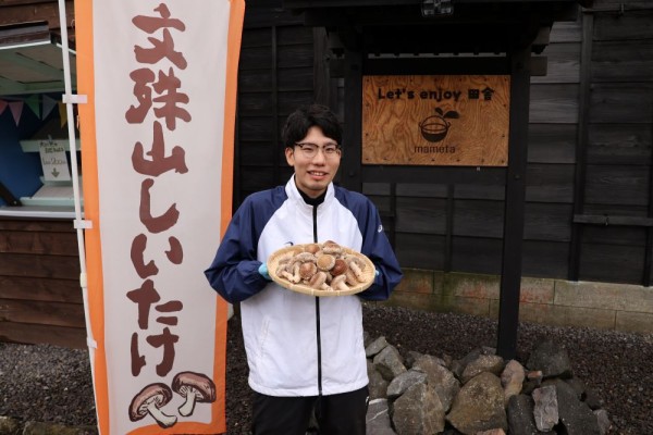 福井市大村町で造園業を営む株式会社マメタは2024年から、文殊山の山裾でシイタケ栽培に取り組み、菌床1万個の安定生産を実現させた。「文殊山しいたけ」と名付け、地域の活性化につなげる。